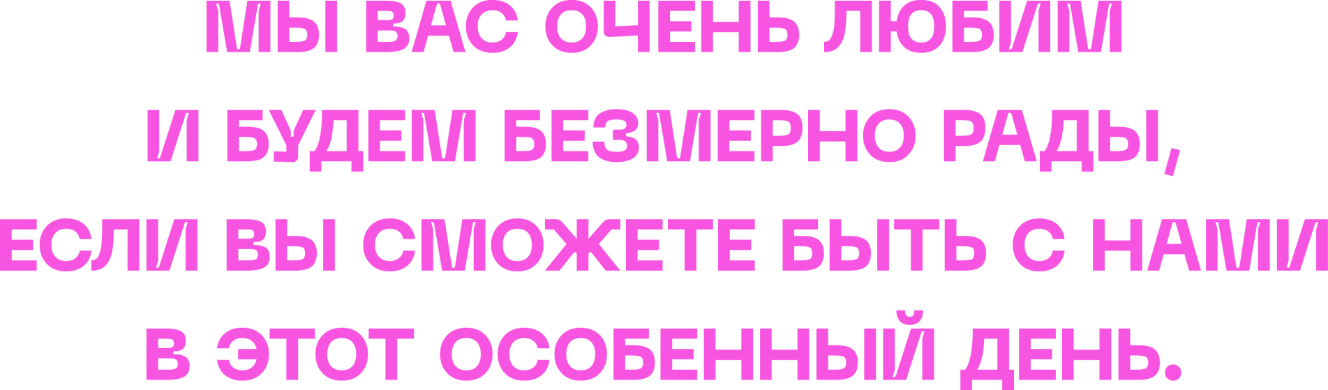 Мы будем очень рады тебя видеть. Мы хотим, чтобы этот день был ярким и наполненным только самыми светлыми и теплыми эмоциями. Ниже детали об этом дне, и нам нужно немножко информации от тебя.