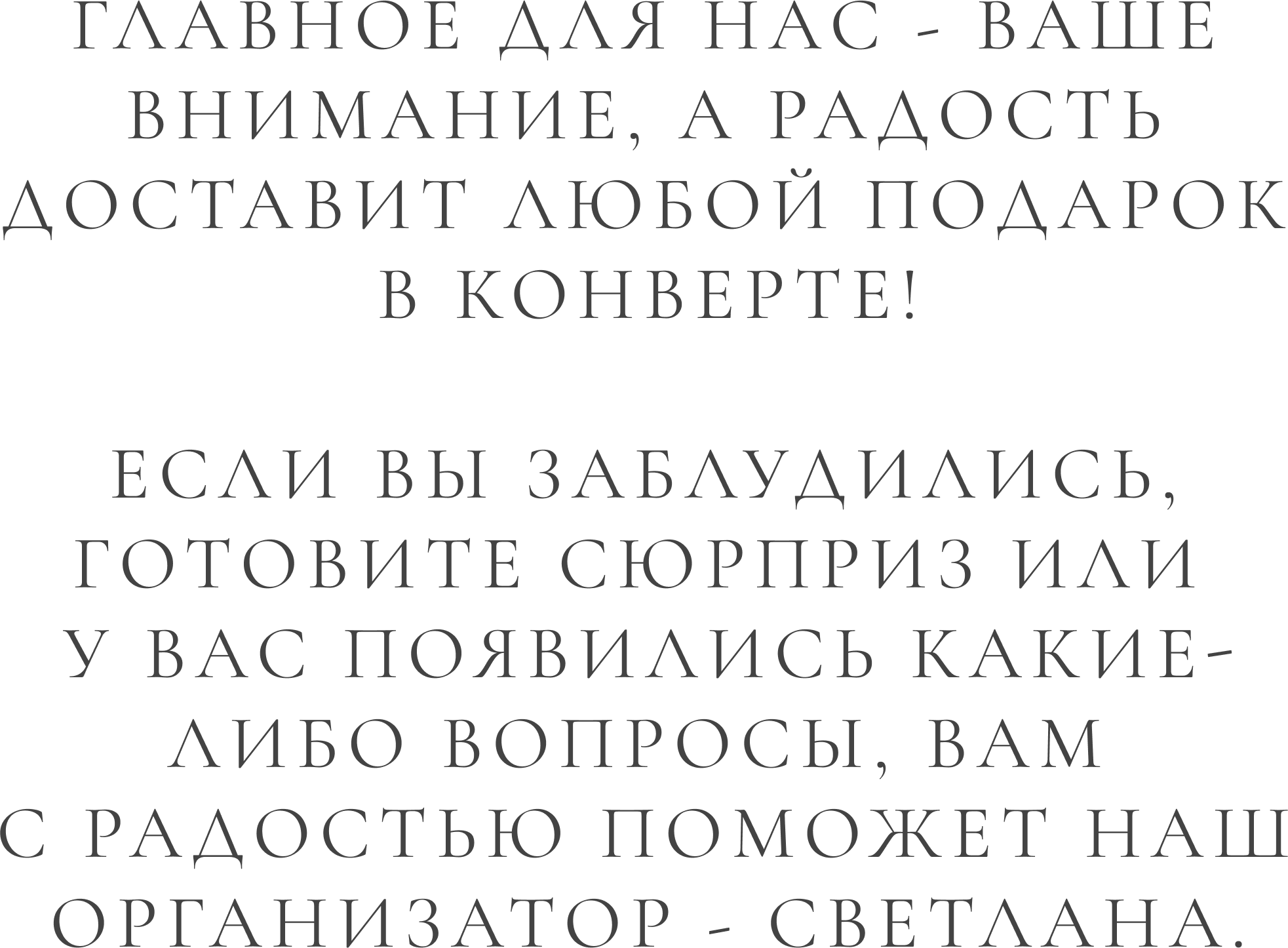 [{"lid":"1705486606798","ls":"10","loff":"","li_type":"in","li_title":"\u0412\u0430\u0448\u0435 \u0418\u043c\u044f \u0438 \u0424\u0430\u043c\u0438\u043b\u0438\u044f ","li_ph":"\u0418\u0432\u0430\u043d \u0418\u0432\u0430\u043d\u043e\u0432\/\u041c\u0430\u0440\u0438\u044f \u0418\u0432\u0430\u043d\u043e\u0432\u0430","li_req":"y","li_nm":"\u0412\u0430\u0448\u0435 \u0418\u043c\u044f \u0438 \u0424\u0430\u043c\u0438\u043b\u0438\u044f "},{"lid":"1705486606799","ls":"20","loff":"","li_type":"rd","li_title":"\u041f\u043b\u0430\u043d\u0438\u0440\u0443\u0435\u0442\u0435 \u043b\u0438 \u0432\u044b \u043f\u0440\u0438\u0441\u0443\u0442\u0441\u0442\u0432\u043e\u0432\u0430\u0442\u044c \u043d\u0430 \u0441\u0432\u0430\u0434\u044c\u0431\u0435?","li_req":"y","li_variants":"\u0414\u0430, \u0441 \u0443\u0434\u043e\u0432\u043e\u043b\u044c\u0441\u0442\u0432\u0438\u0435\u043c!\n\u041f\u0440\u0438\u0434\u0443 \u0441 \u043f\u0430\u0440\u043e\u0439\n\u041a \u0441\u043e\u0436\u0430\u043b\u0435\u043d\u0438\u044e, \u043d\u0435 \u0441\u043c\u043e\u0433\u0443","li_radcb":"rb","li_nm":"\u041f\u043b\u0430\u043d\u0438\u0440\u0443\u0435\u0442\u0435 \u043b\u0438 \u0432\u044b \u043f\u0440\u0438\u0441\u0443\u0442\u0441\u0442\u0432\u043e\u0432\u0430\u0442\u044c \u043d\u0430 \u0441\u0432\u0430\u0434\u044c\u0431\u0435"},{"lid":"1705486854039","ls":"30","loff":"","li_type":"in","li_title":"\u0418\u043c\u044f \u0438 \u0424\u0430\u043c\u0438\u043b\u0438\u044f \u0432\u0430\u0448\u0435\u0439 \u043f\u0430\u0440\u044b:","li_ph":"\u0418\u0432\u0430\u043d \u0418\u0432\u0430\u043d\u043e\u0432\/\u041c\u0430\u0440\u0438\u044f \u0418\u0432\u0430\u043d\u043e\u0432\u0430","li_nm":"\u0418\u043c\u044f \u0438 \u0424\u0430\u043c\u0438\u043b\u0438\u044f \u0432\u0430\u0448\u0435\u0439 \u043f\u0430\u0440\u044b:"},{"lid":"1705486873313","ls":"40","loff":"","li_type":"rd","li_title":"\u0411\u0443\u0434\u0443\u0442 \u043b\u0438 \u0441 \u0432\u0430\u043c\u0438 \u0434\u0435\u0442\u0438?","li_variants":"\u0414\u0430\n\u041d\u0435\u0442","li_radcb":"rb","li_nm":"\u0411\u0443\u0434\u0443\u0442 \u043b\u0438 \u0441 \u0432\u0430\u043c\u0438 \u0434\u0435\u0442\u0438"},{"lid":"1705486889387","ls":"50","loff":"","li_type":"qn","li_title":"\u0421\u043a\u043e\u043b\u044c\u043a\u043e \u0434\u0435\u0442\u0435\u0439 \u043f\u0440\u0438\u0434\u0451\u0442 \u0441 \u0432\u0430\u043c\u0438?","li_ph":"0","li_nm":"\u0421\u043a\u043e\u043b\u044c\u043a\u043e \u0434\u0435\u0442\u0435\u0439 \u043f\u0440\u0438\u0434\u0451\u0442 \u0441 \u0432\u0430\u043c\u0438"},{"lid":"1705486914084","ls":"60","loff":"","li_type":"in","li_title":"\u041d\u0430\u043f\u0438\u0448\u0438\u0442\u0435 \u0438\u043c\u0435\u043d\u0430 \u0438 \u0432\u043e\u0437\u0440\u0430\u0441\u0442 \u0434\u0435\u0442\u0435\u0439:","li_ph":"\u0418\u0432\u0430\u043d, 5 \u043b\u0435\u0442 \u0438 \u041c\u0430\u0440\u0438\u044f, 3 \u0433\u043e\u0434\u0430","li_nm":"\u041d\u0430\u043f\u0438\u0448\u0438\u0442\u0435 \u0438\u043c\u0435\u043d\u0430 \u0438 \u0432\u043e\u0437\u0440\u0430\u0441\u0442 \u0434\u0435\u0442\u0435\u0439:"},{"lid":"1705486606800","ls":"70","loff":"","li_type":"rd","li_title":"\u0412\u0430\u0448\u0438 \u043f\u0440\u0435\u0434\u043f\u043e\u0447\u0442\u0435\u043d\u0438\u044f \u043f\u043e \u043d\u0430\u043f\u0438\u0442\u043a\u0430\u043c:","li_variants":"\u0411\u0435\u043b\u043e\u0435 \u0432\u0438\u043d\u043e\n\u041a\u0440\u0430\u0441\u043d\u043e\u0435 \u0432\u0438\u043d\u043e\n\u0428\u0430\u043c\u043f\u0430\u043d\u0441\u043a\u043e\u0435\n\u0412\u043e\u0434\u043a\u0430\n\u0414\u0440\u0443\u0433\u043e\u0435","li_radcb":"cb","li_nm":"\u0412\u0430\u0448\u0438 \u043f\u0440\u0435\u0434\u043f\u043e\u0447\u0442\u0435\u043d\u0438\u044f \u043f\u043e \u043d\u0430\u043f\u0438\u0442\u043a\u0430\u043c:"},{"lid":"1709233219845","ls":"80","loff":"","li_type":"in","li_title":"\u0412\u0430\u0448 \u0432\u0430\u0440\u0438\u0430\u043d\u0442 \u043f\u043e \u043d\u0430\u043f\u0438\u0442\u043a\u0430\u043c:","li_ph":"\u0414\u0440\u0443\u0433\u043e\u0435","li_nm":"\u0412\u0430\u0448 \u0432\u0430\u0440\u0438\u0430\u043d\u0442 \u043f\u043e \u043d\u0430\u043f\u0438\u0442\u043a\u0430\u043c:"},{"lid":"1709233252580","ls":"90","loff":"","li_type":"rd","li_title":"\u041a\u0430\u043a \u0432\u044b \u043f\u043b\u0430\u043d\u0438\u0440\u0443\u0435\u0442\u0435 \u0434\u043e\u0431\u0440\u0430\u0442\u044c\u0441\u044f \u043d\u0430 \u043f\u0440\u0430\u0437\u0434\u043d\u0438\u043a?","li_variants":"\u041d\u0430 \u043c\u0430\u0448\u0438\u043d\u0435 \/ \u0442\u0430\u043a\u0441\u0438 \n\u041f\u043e\u043d\u0430\u0434\u043e\u0431\u0438\u0442\u0441\u044f \u0442\u0440\u0430\u043d\u0441\u0444\u0435\u0440 ","li_radcb":"rb","li_nm":"\u041a\u0430\u043a \u0432\u044b \u043f\u043b\u0430\u043d\u0438\u0440\u0443\u0435\u0442\u0435 \u0434\u043e\u0431\u0440\u0430\u0442\u044c\u0441\u044f \u043d\u0430 \u043f\u0440\u0430\u0437\u0434\u043d\u0438\u043a"},{"lid":"1705486606801","ls":"100","loff":"y","li_type":"in","li_title":"\u041e\u0441\u0442\u0430\u0432\u044c\u0442\u0435 \u0441\u0432\u043e\u0439 \u043b\u044e\u0431\u0438\u043c\u044b\u0439 \u043c\u0443\u0437\u044b\u043a\u0430\u043b\u044c\u043d\u044b\u0439 \u0442\u0440\u0435\u043a:","li_ph":"Bruno Mars - Just The Way You Are","li_nm":"\u041e\u0441\u0442\u0430\u0432\u044c\u0442\u0435 \u0441\u0432\u043e\u0439 \u043b\u044e\u0431\u0438\u043c\u044b\u0439 \u043c\u0443\u0437\u044b\u043a\u0430\u043b\u044c\u043d\u044b\u0439 \u0442\u0440\u0435\u043a:"}]